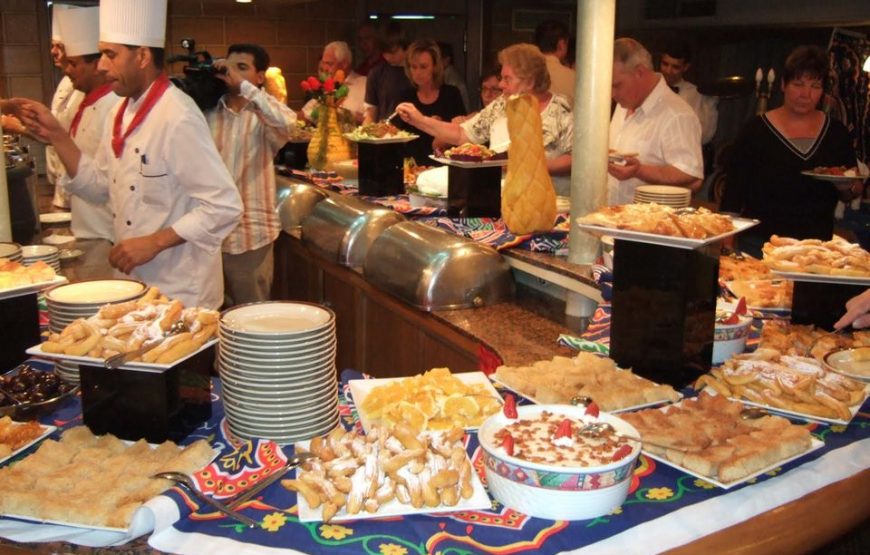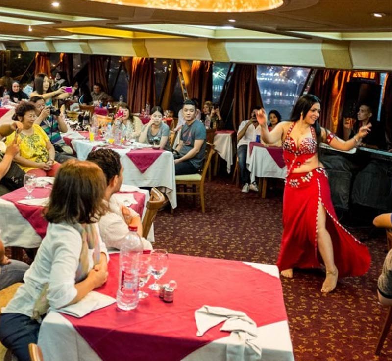 It is a great way to enjoy a night on the Nile while you are in Cairo. So, you are invited to dinner on the cruising restaurant for two hours sailing trip on the Nile with belly dancers, a folklore Show, Oriental music, and dinner. All the time, you’ll be delighted in our Chef’s menu along with a selection of Egyptian favorites, made with the freshest ingredients, and be ready to make it a memorable dining experience.